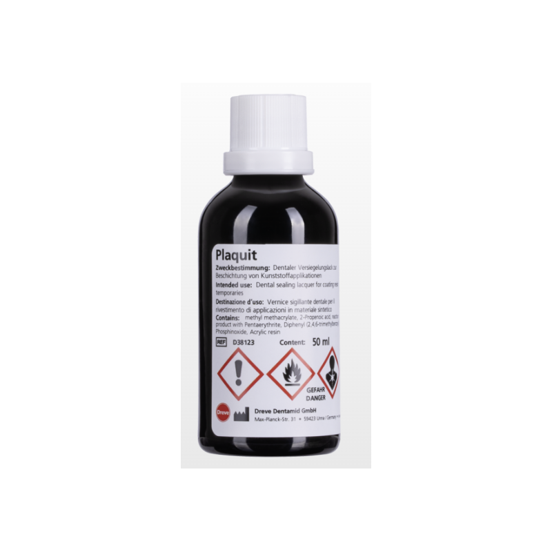 PLAQUIT DREVE Vernis Photopolymérisable Forme une fine couche résistante sur la prothèse. Augmente la résistance à l'abrasion Flacon de 50ml ref 38123